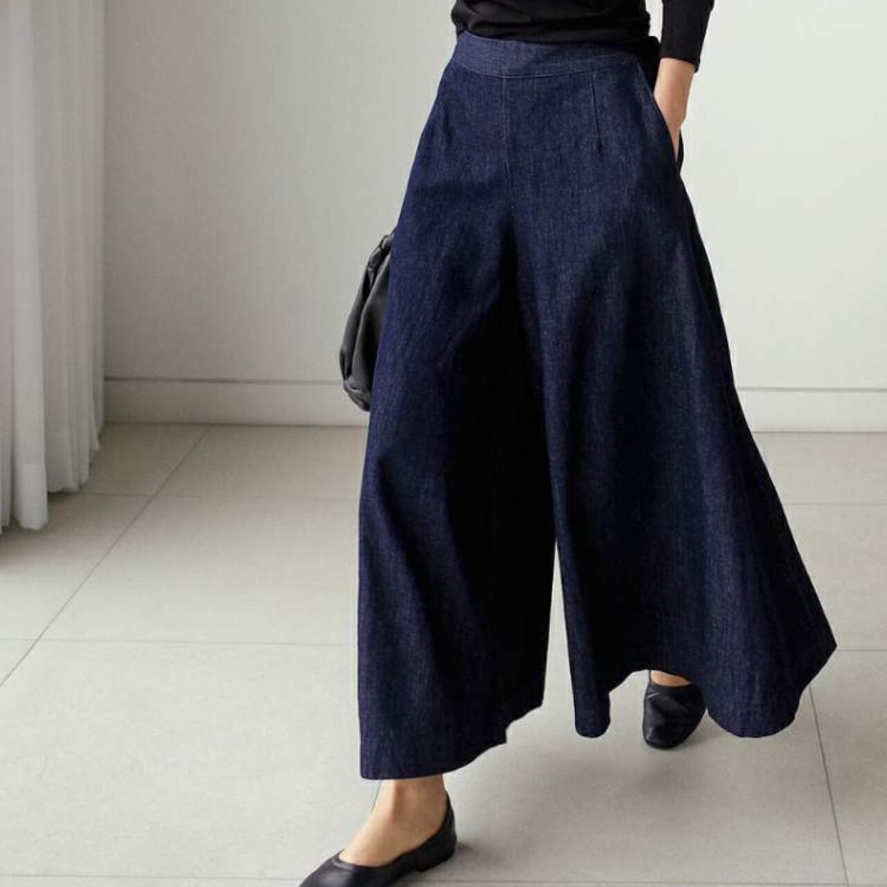 着回し力抜群のデニムワイドパンツ。