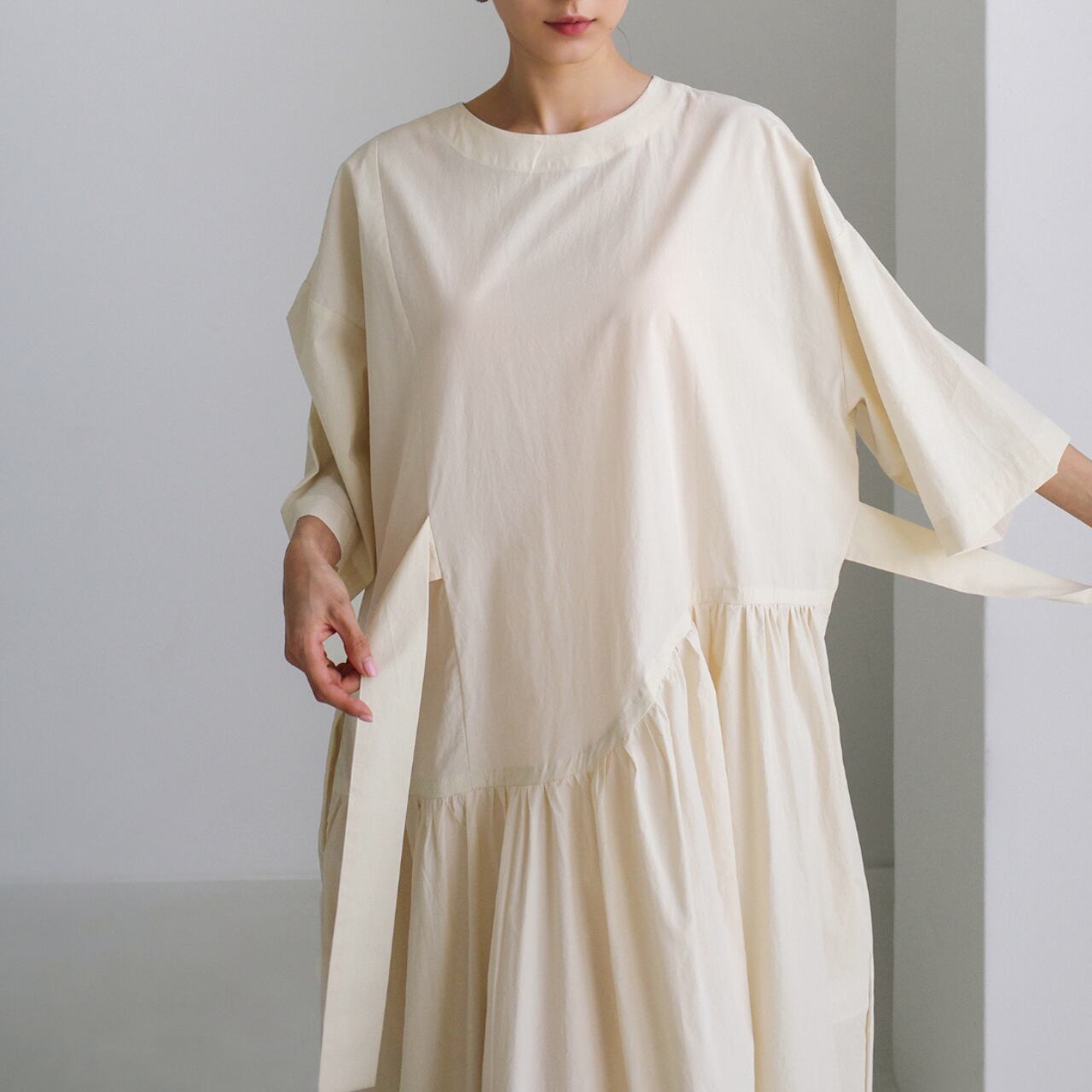 ウエストのリボンでシルエットに変化をつけられるので、気分に合わせて着こなしを楽しめます。