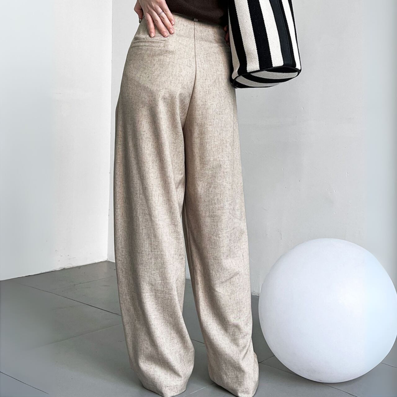 美しいシルエットが魅力のセンタープレスワイドレッグパンツ。