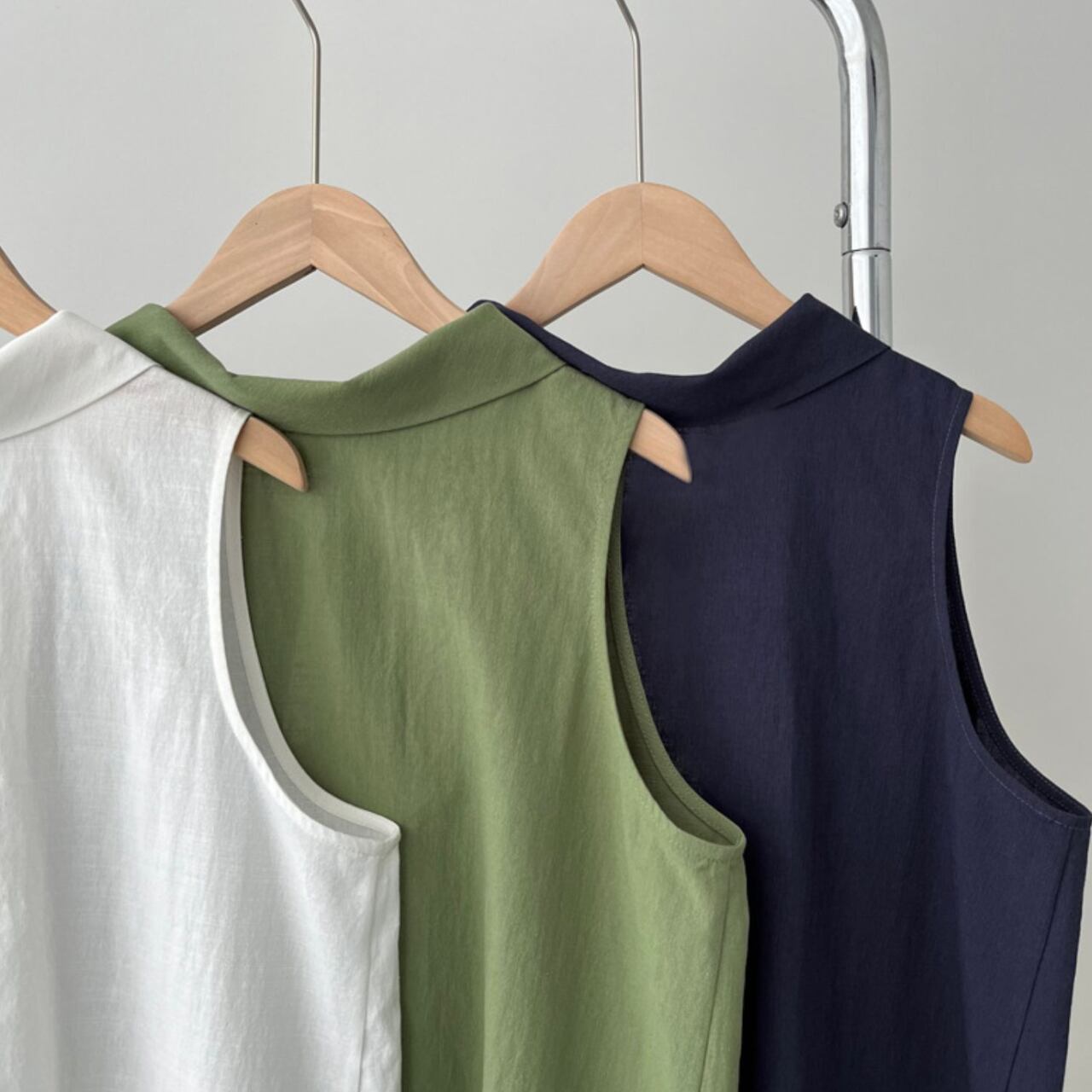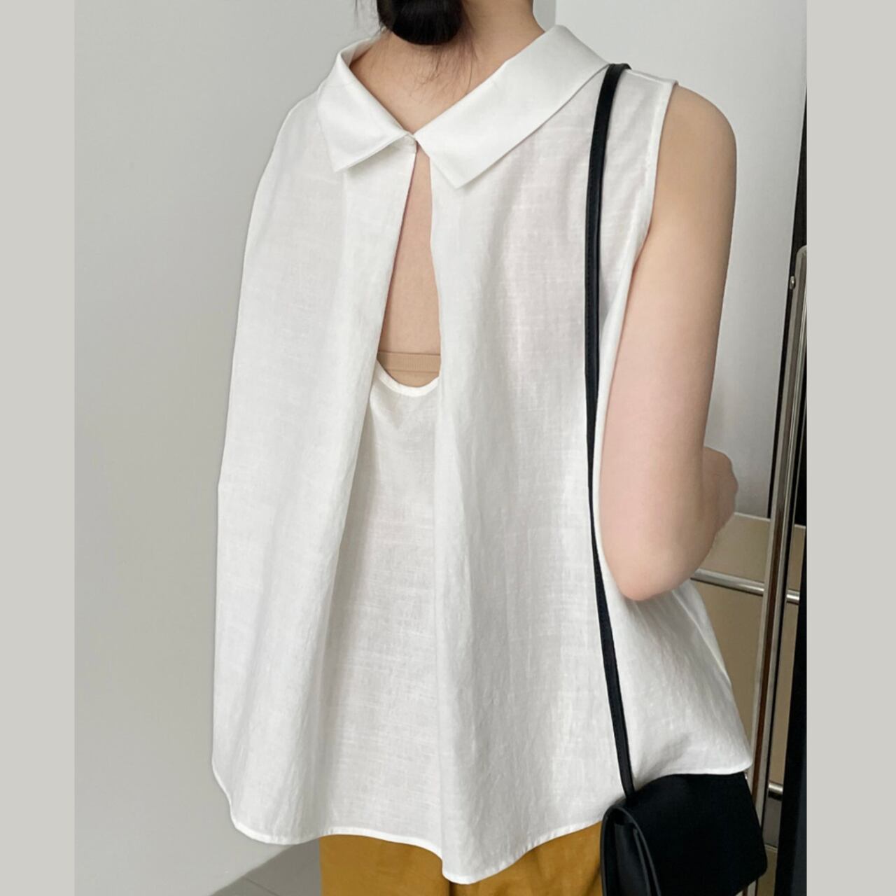 バックデザインカラーノースリーブトップス 00396