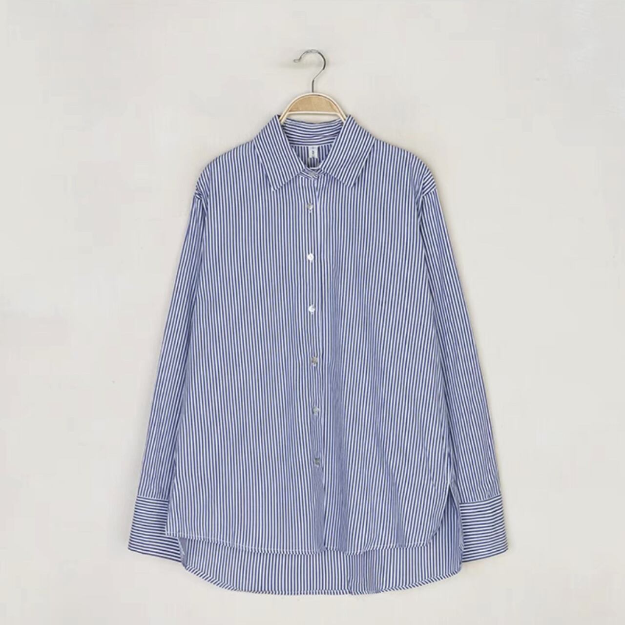 爽やかな印象を与えてくれる細めピッチのストライプシャツ。